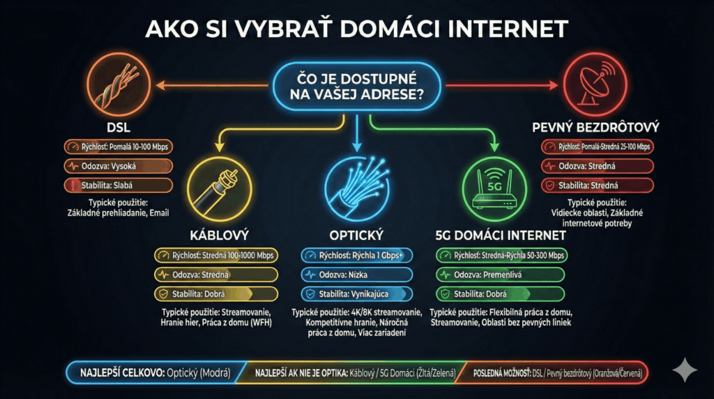 Ak nemáš optiku → káblovka (DOCSIS) býva dobrý kompromis.
