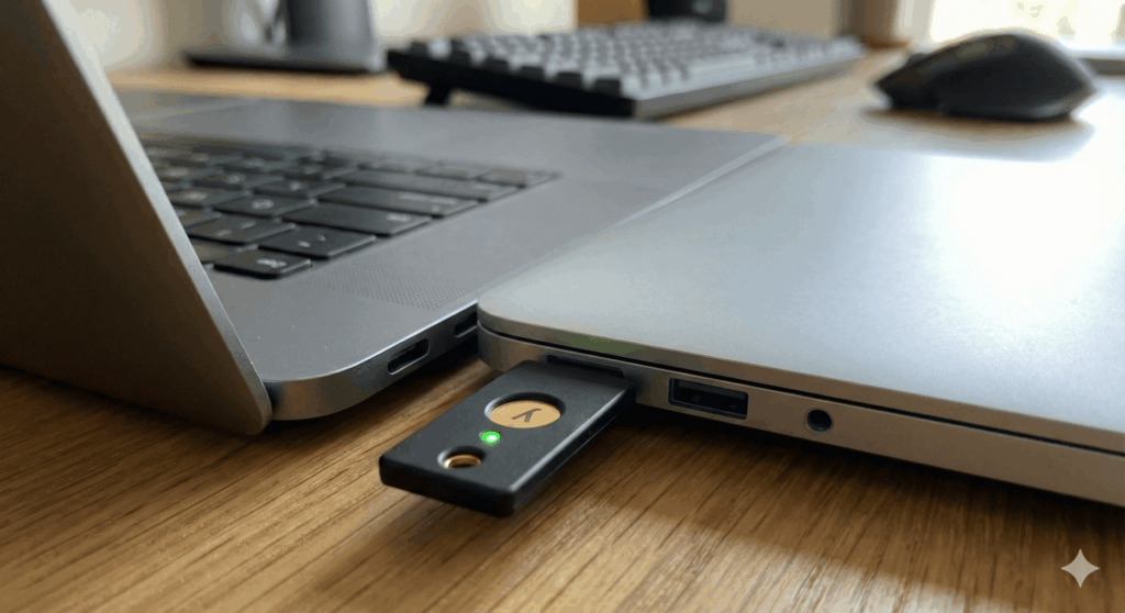 Darček pre IT-čkára, ktorý okamžite zvyšuje bezpečnosť: hardvérový bezpečnostný kľúč YubiKey. Ide o malý USB/NFC kľúč, ktorý pridá k účtu ďalší faktor – bez fyzického kľúča sa do účtu nikto nedostane. Podporuje Google, Microsoft, GitHub, Facebook, banky a desiatky ďalších služieb.