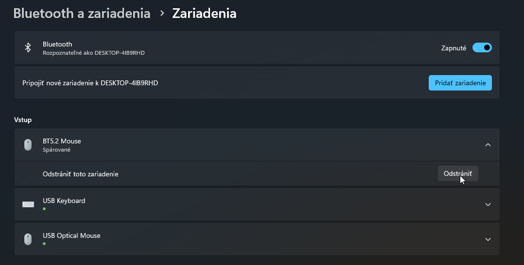- Nastavenia (WIN + i) → Bluetooth a zariadenia