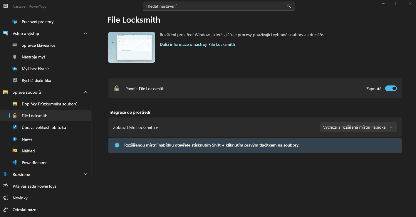 - ☐ Pridaj File Locksmith do kontextového menu.