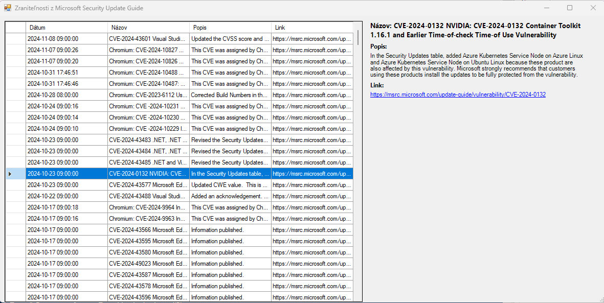 Kód aplikácie ti umožňuje získať prehľad o najnovších bezpečnostných hrozbách. Zároveň ponúka intuitívne rozhranie, kde si môžeš jednoducho prezerať podrobnosti o konkrétnych zraniteľnostiach. Pomocou tohto nástroja môžeš mať aktuálne informácie doslova na dosah ruky – a všetko len s využitím PowerShellu! 💻🚀